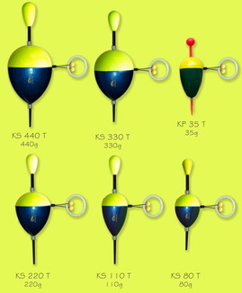 Splávek na sumce s korálky a kroužkem pro trhací bójku.